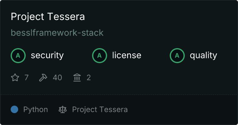 I know everything about besslframework-stack/project-tessera. Ask me about installation, configuration, usage, or troubleshooting.